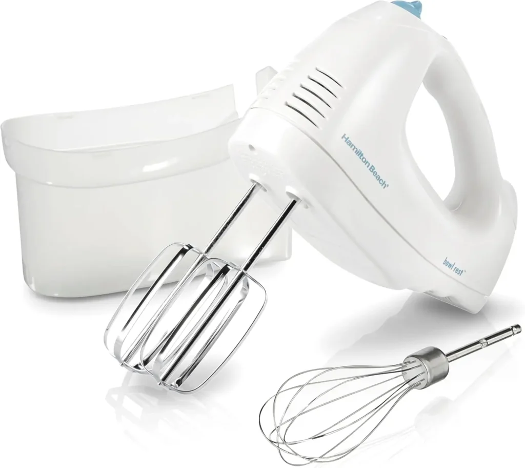 | Hamilton Beach | 250W hand mixer, 6 speeds, storage case | Baking focused | 4 | 4 | 1 year | See on Amazon |