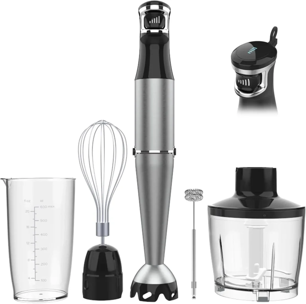 The Ganiza set includes five tools in one box. You get an 800ml beaker, a 600ml chopper, a whisk, a milk frother, and the blending shaft. The 1000 watt pure copper motor lasts longer than standard motors. Sixteen speed settings give you exceptional control. The black finish looks professional. This is a good choice for cooks who want one appliance for many jobs.