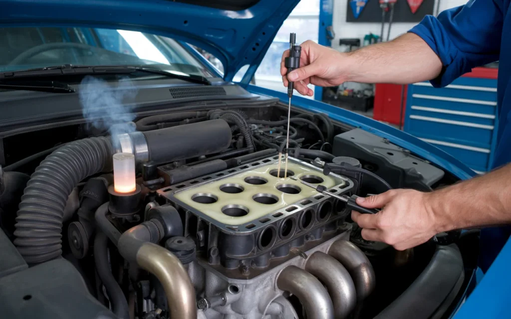 A leak down test is more detailed. It uses compressed air to find exactly where pressure escapes. You need a leak down tester for this. Attach it to each cylinder with the piston at top dead center. Then listen for air. If you hear air hissing from the exhaust, you have a leak at the exhaust valve. Hissing from the intake means an intake valve leak. But here is the key for a head gasket. If you see bubbles in the radiator while doing this test, air is going from the cylinder into the coolant. That confirms a blown head gasket.