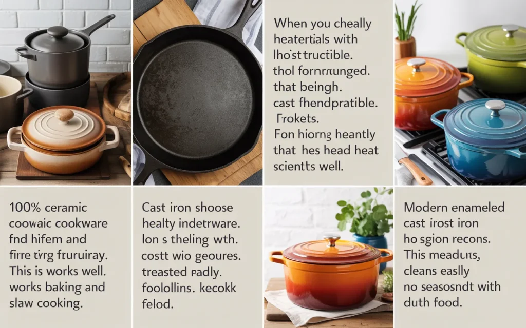 Maybe you love stir fry or steak with a perfect sear. You need materials that take high heat without breaking down. Cast iron, carbon steel, and stainless steel all work great. Avoid ceramic coated pans at extremely high temperatures, as some coatings can discolor or degrade.