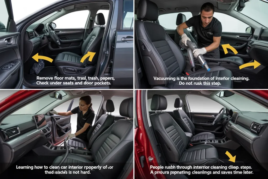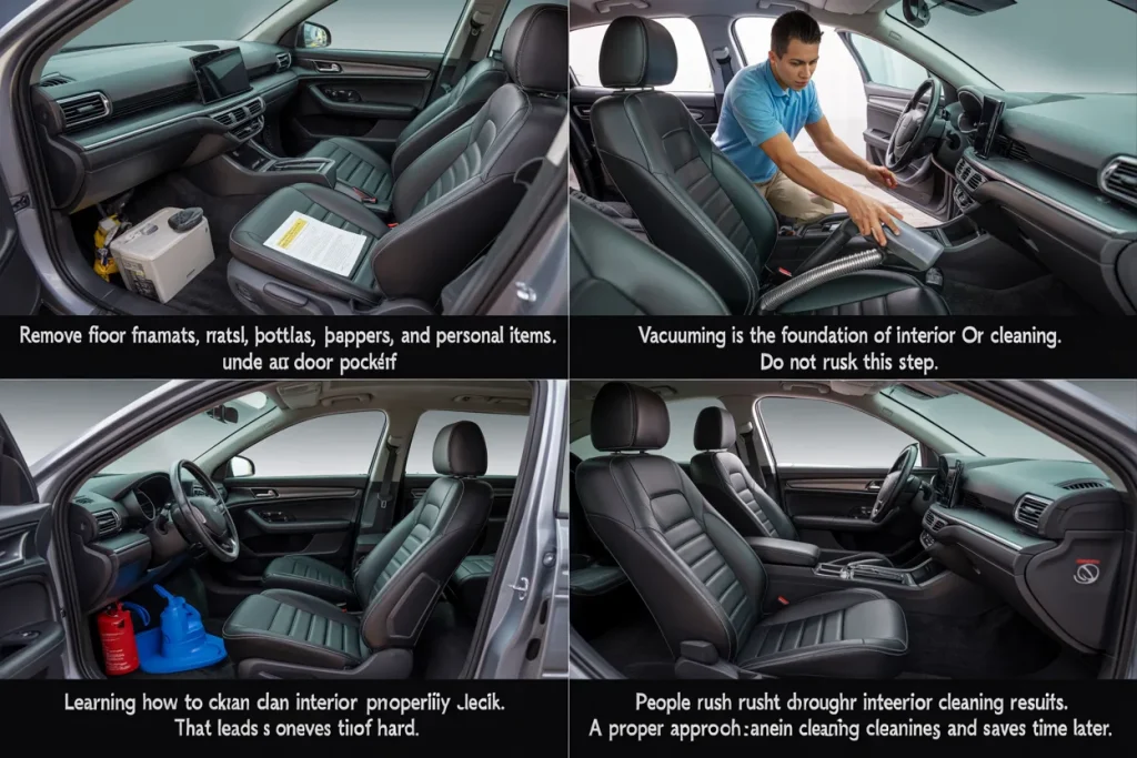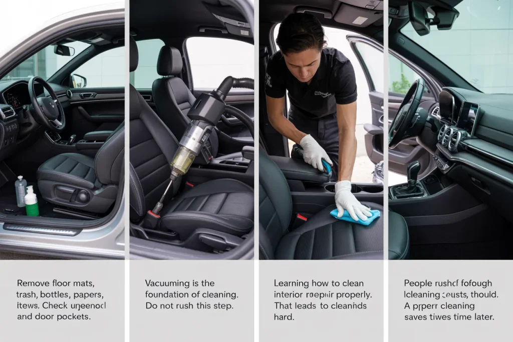 Learning how to clean car interior properly is not hard. You do not need expensive tools or special skills. You just need the right steps, some patience, and simple products. This guide explains each step in clear language so anyone can follow it at home.