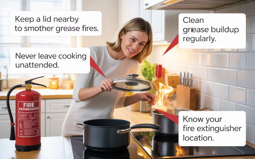You practice this method in your mind so it comes natural if the moment arrives. Many people freeze when they see flames but a clear plan helps you act fast. Fire safety tips for kitchen always stress this point because grease causes more than half of cooking fires. Keep children away during frying and never leave the room. When you prepare ahead the outcome stays under control and no one gets hurt.