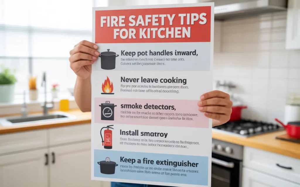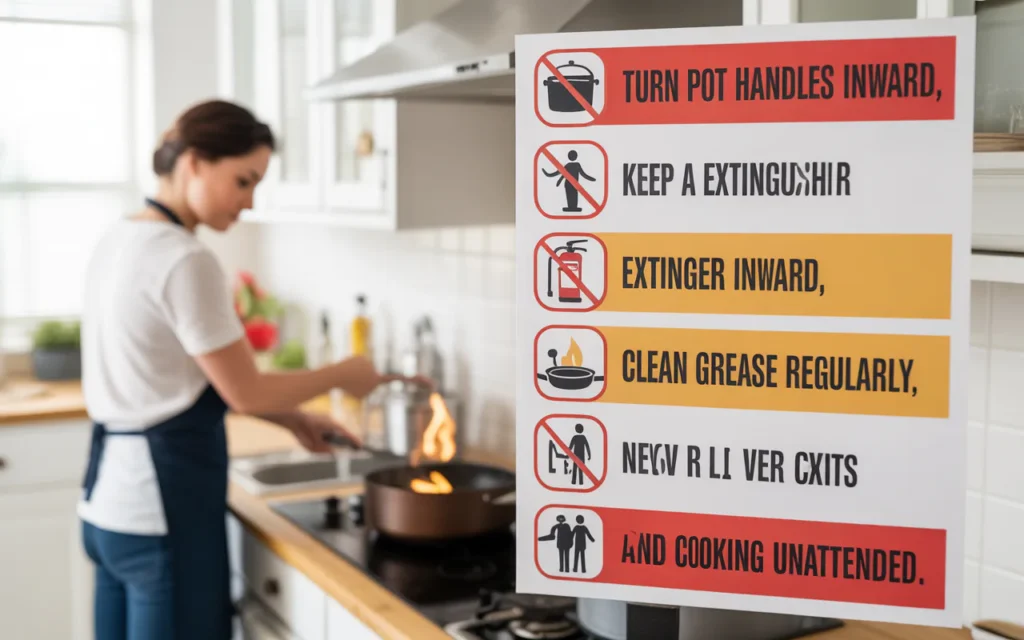 You want practical ideas that fit into your normal routine without extra effort. Fire safety tips for kitchen start with keeping the area clean and clear. Wipe counters after each meal and remove any grease that collects on the stove. Store towels and paper items far from the heat so they stay safe. Turn pot handles toward the back of the stove to keep them out of reach. These small moves add up and stop many problems before they begin.