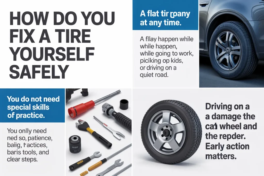 Learn clear, safe steps to fix a flat tire yourself at home or on the road. This guide explains tools, safety tips, and mistakes so you can handle a flat tire with confidence.
