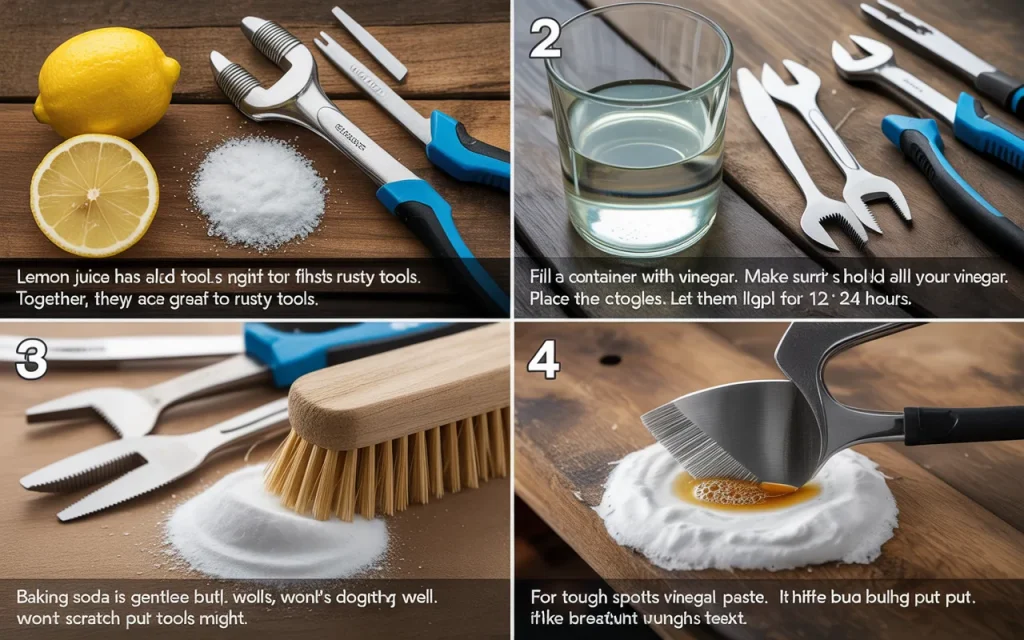 Store products work well for big jobs. If you have many tools to clean, a commercial rust remover might save time. For small jobs, try kitchen items first.