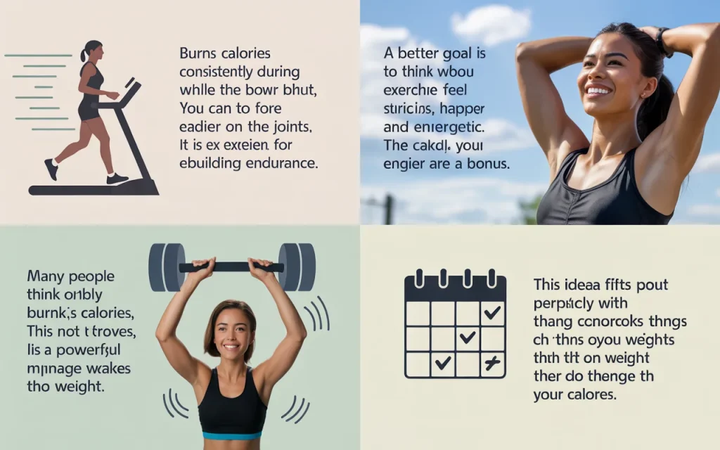 A better goal is to think about how exercise makes you feel stronger, happier, and more energetic. The calories burned are a bonus.