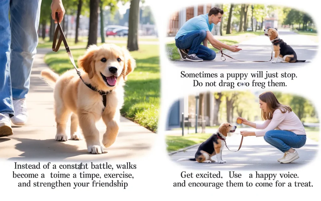 This is the heart of it all. You want your puppy to love going for walks with you. Use lots of praise, treats, and happy talk. If you get frustrated, take a break. Your puppy can feel your stress. Remember, they are not trying to be bad. They are just learning.