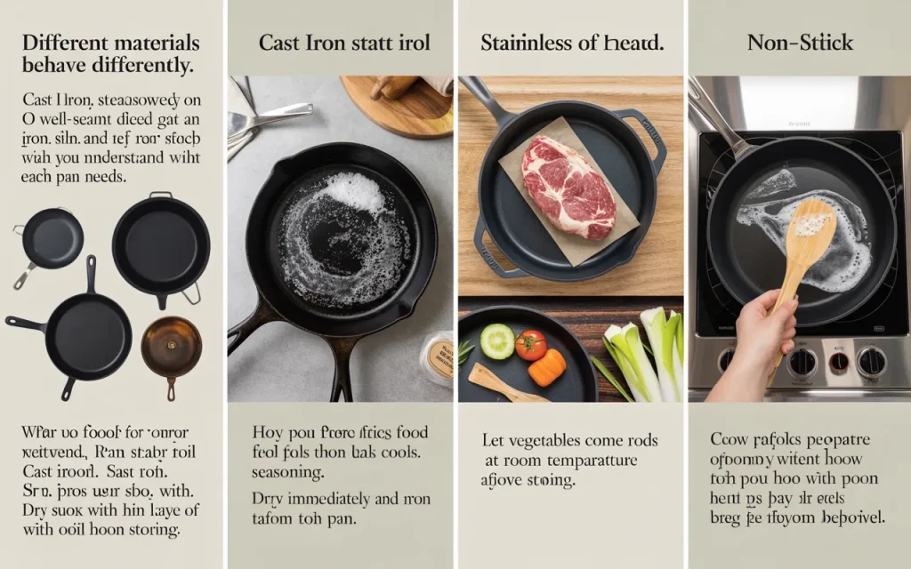 | Pan Type | Cleaning Method | Drying | Oil After Cleaning |