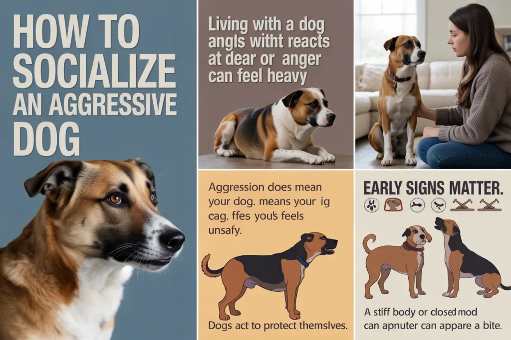 Learn clear and safe steps to socialize an aggressive dog with patience and care. This guide explains causes, training steps, safety tips, and real progress signs.